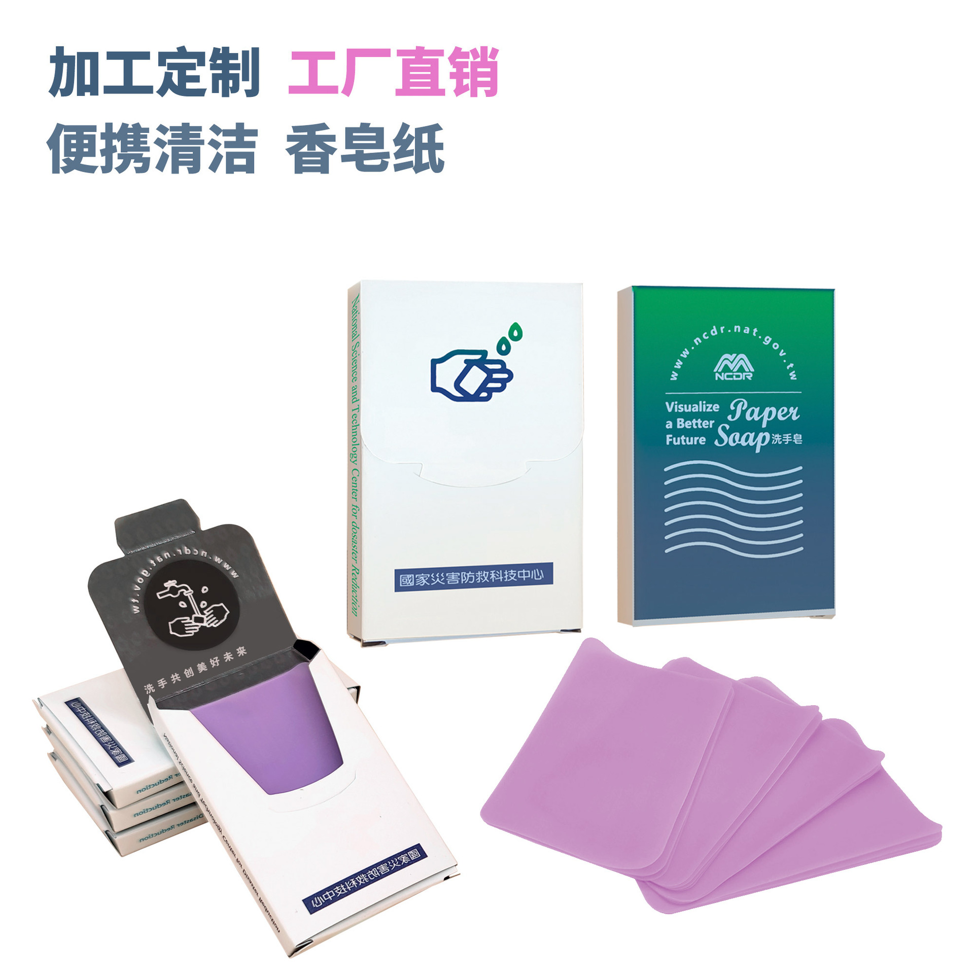 Processing customized outdoor hand soap, portable paper soap, export paper soap